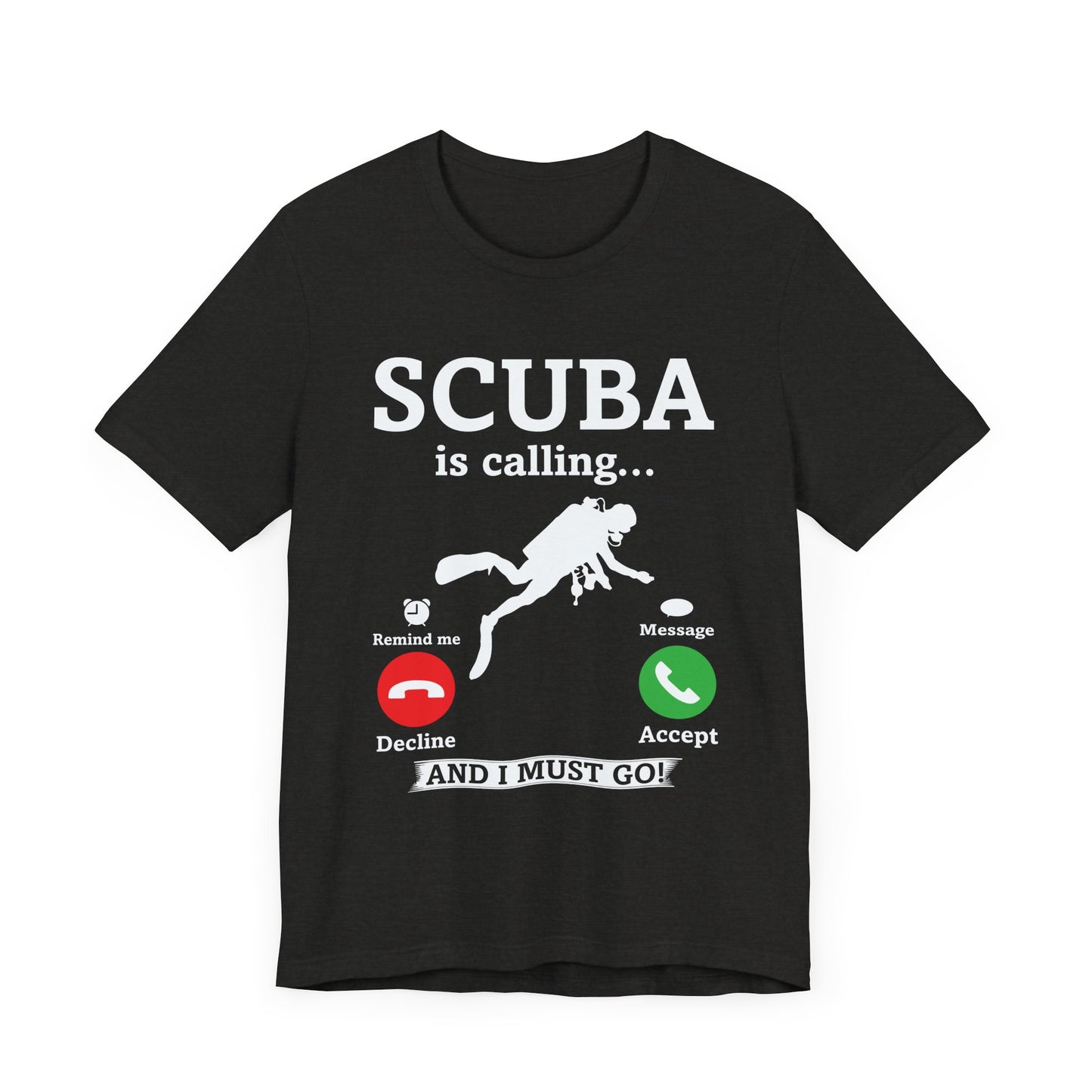Scuba is Calling T-Shirt – Funny Scuba Diver Shirt, Humorous Tee with "Scuba is on the Phone" Design, Accept or Decline Option, Perfect gift for the Scuba Diver.